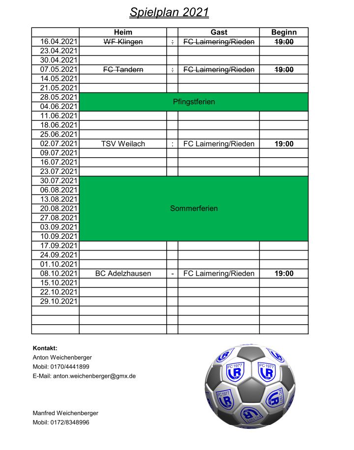 Einmal wöchentlich am Mittwoch (im Winter in der Dreifachturnhalle in Dasing)